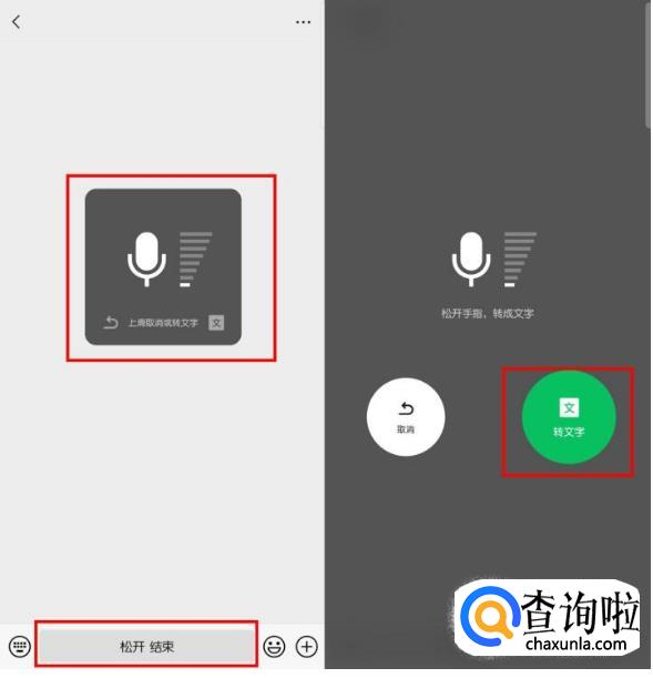 打开微信,随便打开一个聊天框,然后打开语音输入,长按按住说话按钮并对着手机说粤语,说完后上滑就会出现语音转文字界面。