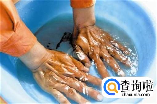 先将手浸泡到肥皂水中,一般浸泡三分钟左右即可,这样手上的鞋胶就会软化了,易于我们下一步清理。