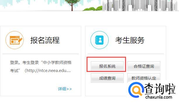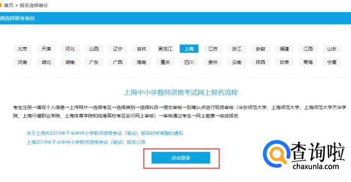 找到中小学教师资格考试官网并进入,点击报名系统,然后选择一个省份后点击登录。