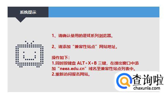 此时需要设置兼容性视图,最好是在IE里打开,然后根据提示我们按下快捷键ALT+X+B。