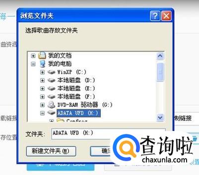 在这个界面里可以选择歌曲的音质,容量越大音质越好。然后设置下歌曲的保存路径,点击在右边的蓝色书本图标,在出现的对话框里找到U盘并点选,点“确定”。