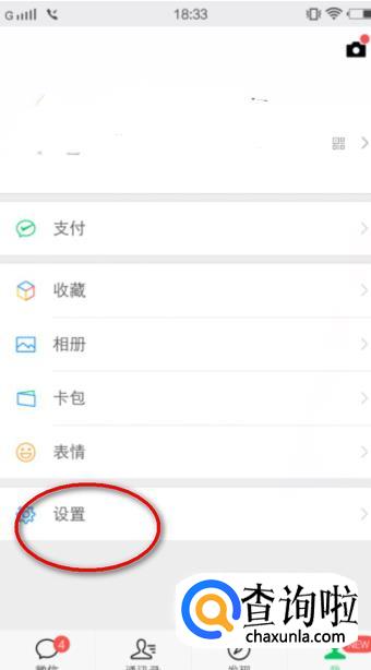 登陆微信之后,在“我”选项卡中,点击“设置”。