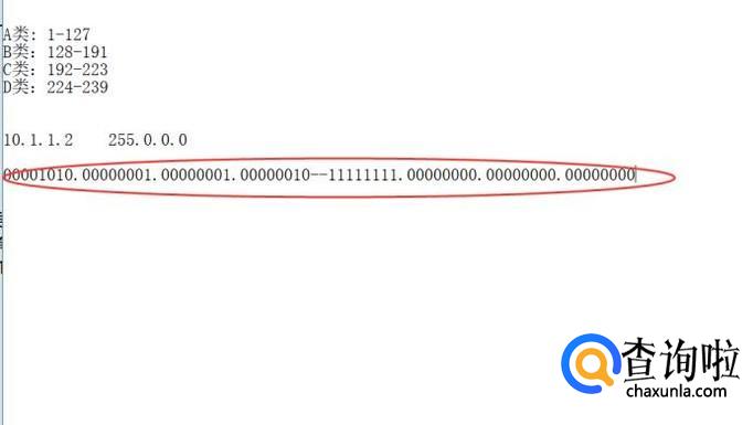 现在我们以一个主A类的IP地址来进行子网划分。如10.1.1.2是一个主A类地址,按上面的讲解,他的掩码就是255.0.0.0,换算成二进制则为00001010.00000001.00000001.00000010,掩码为11111111.00000000.00000000.00000000.