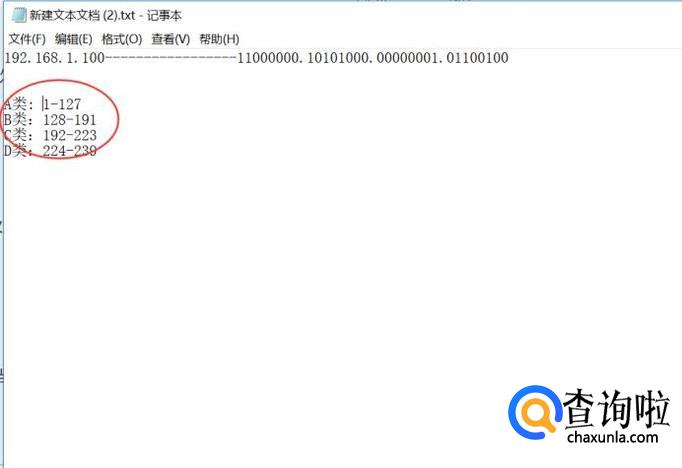IPv4的主类地址有A,B,C,D,E这五大类主A类第一段全为网络位,剩下的三段为机器位,第一段8个二进制的第一个值必须为0,即主A类IP范围是1-127.XX.XX.XX,以此类推,主E类比较特殊,由实验室保留。