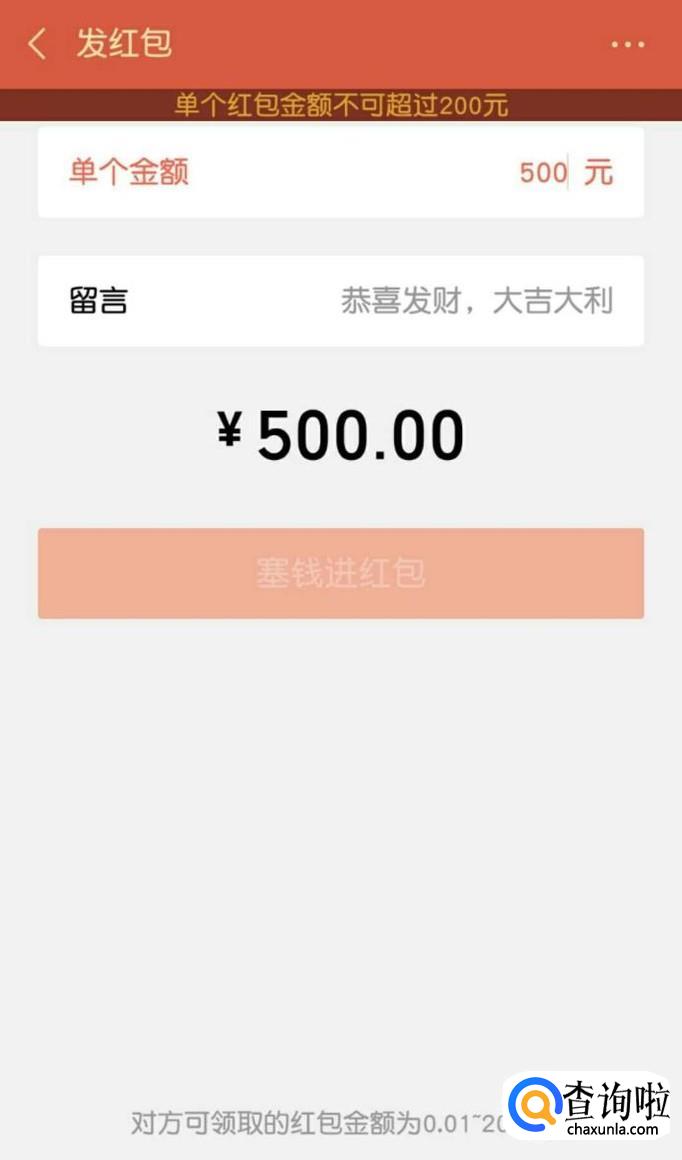 如果是个人红包,可以直接采用微信转账的方式,直接转500金额。