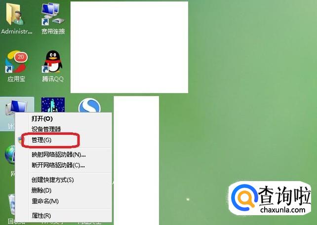 首先,我们打开电脑,在桌面上右键单击“计算机”图标,选择“管理”。