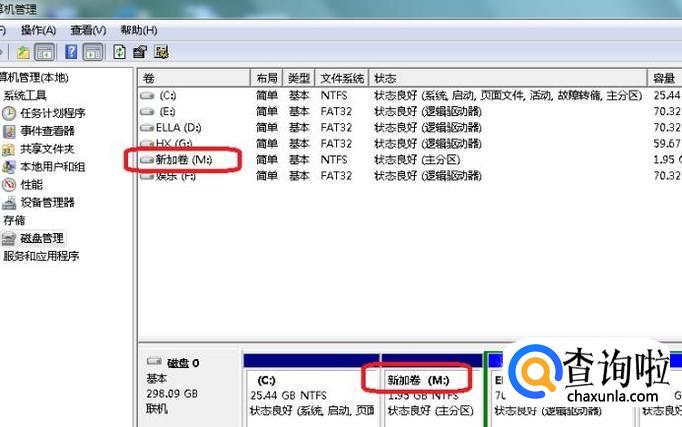 然后,我们新建磁盘,分配驱动器号为“M”,然后按照提示完成创建磁盘,创建完成后,就可以看到新的磁盘了,如图所示。