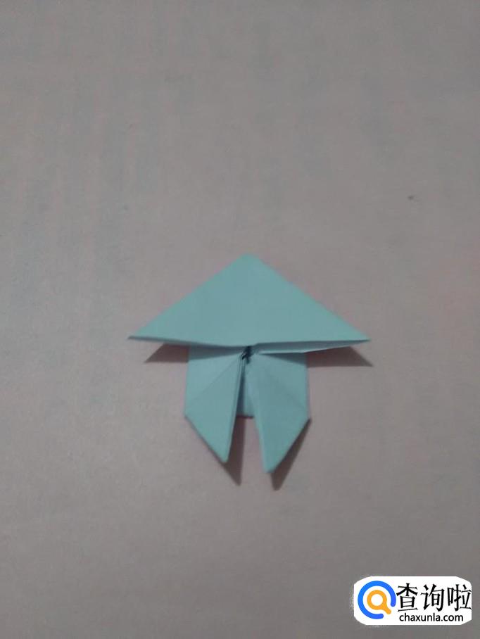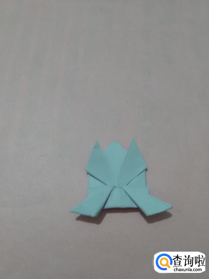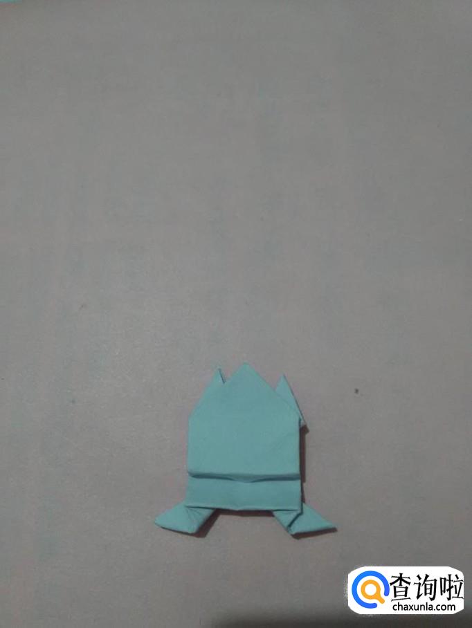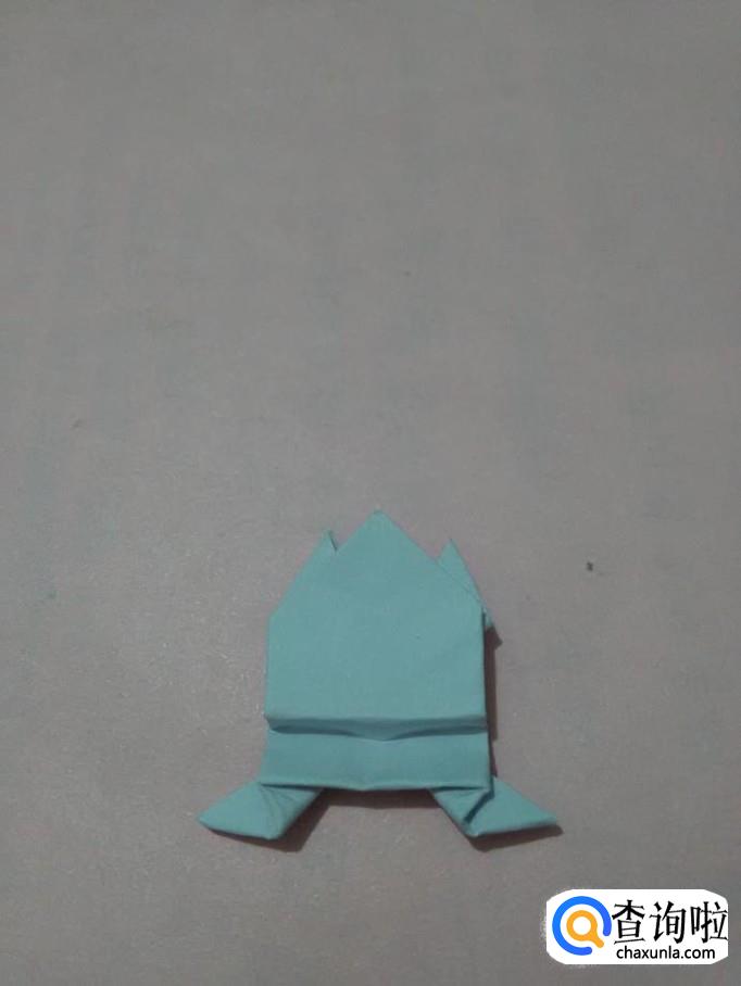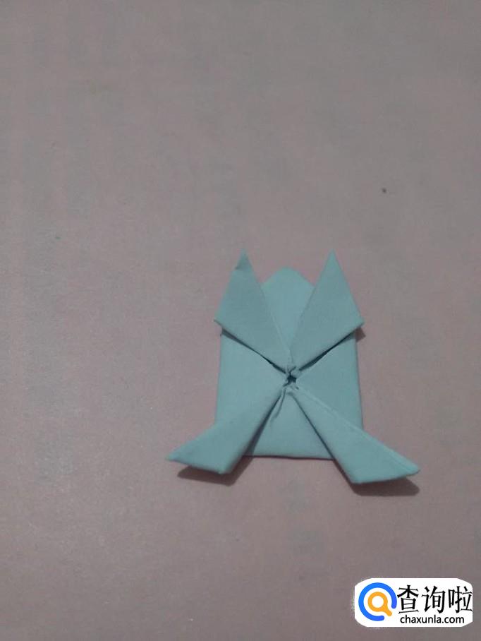 将上面三角形左右两边向上折一小段,当作青蛙的两条前腿。