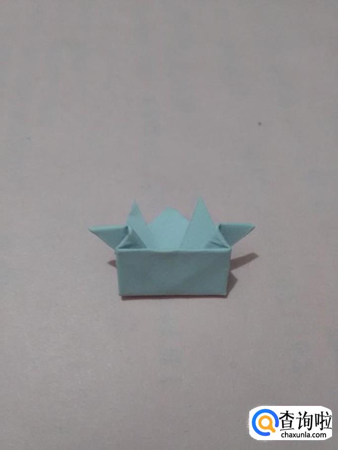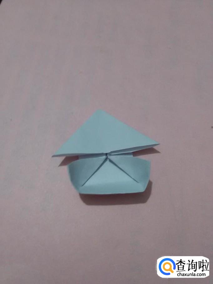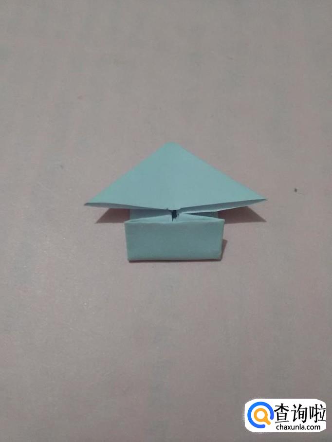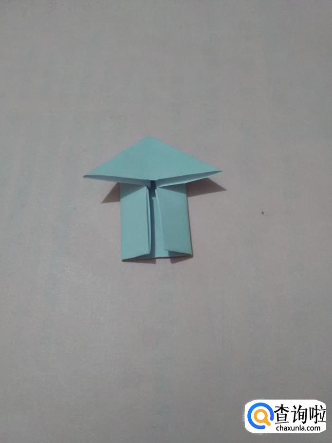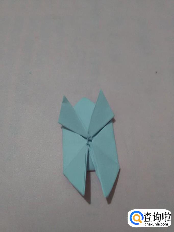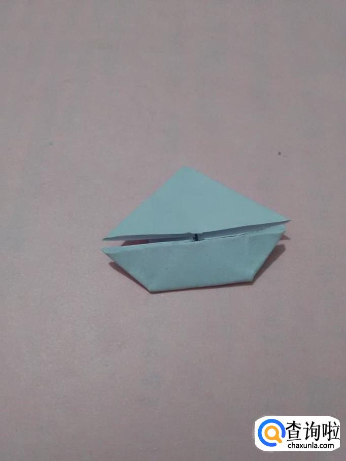 将上面三角形左右两边向上折一小段,当作青蛙的两条前腿。