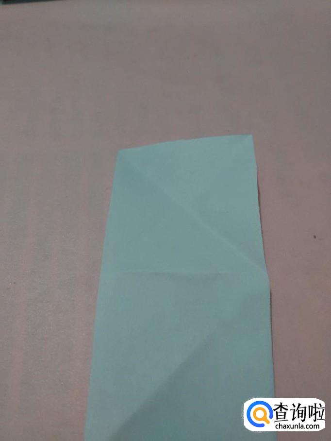 将对角线两侧的纸向中间折,将上面的边往下折,将正方形折成三角形。