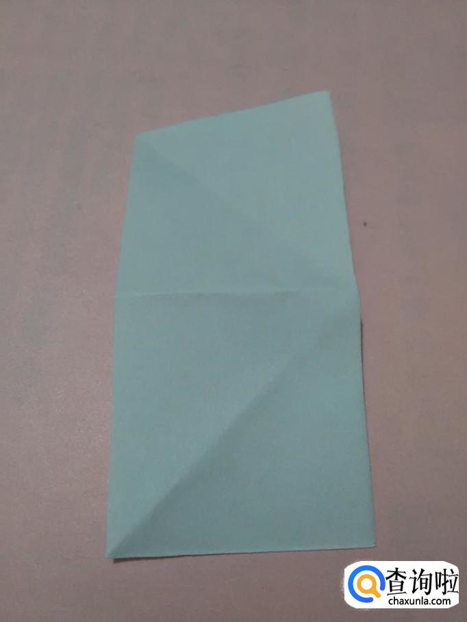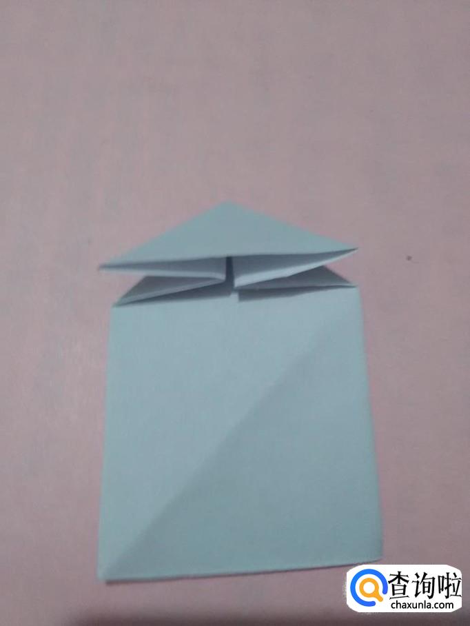 将上方的正方形左右两个角往下折,折出两条对角线。