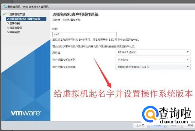 接下来需要给虚拟机设置名称并制定虚拟机中操作系统的版本信息,如下图所示