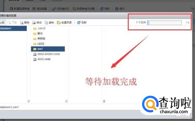 然后我们就会看到数据存储浏览器界面的右上角出现了进度条,这就是安装文件的加载进度条,我们等它加载完毕即可,如下图所示