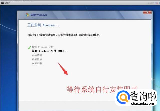接着就会进入到win7的自动安装界面,我们只要等待它自动安装完即可,如下图所示