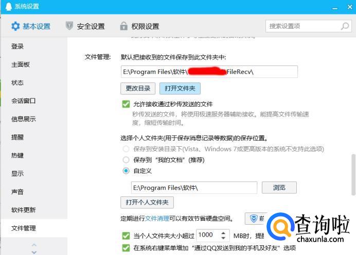 若是对方也删除了,在电脑上的登录qq,进入qq 的设置界面,如图,看到qq 聊天记录记录的保存路径。这时,根据路径进入到文件夹。