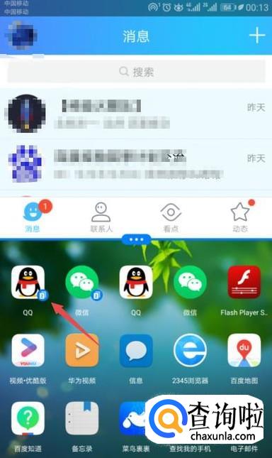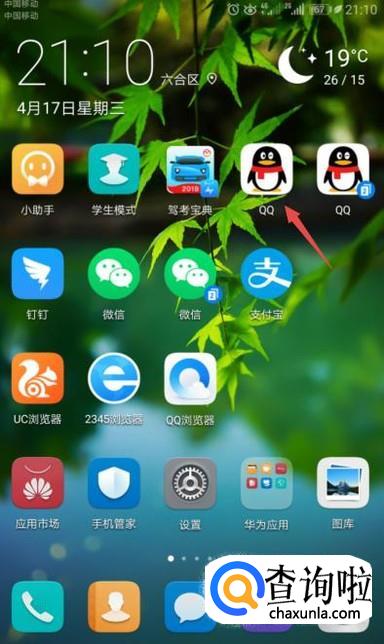 先点击手机桌面上的一个应用,此处点击QQ;