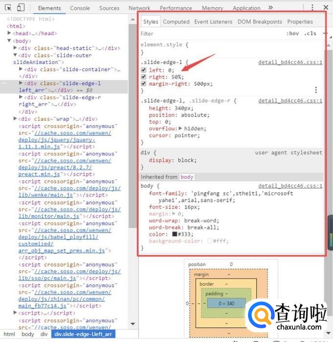 在最右边的一块代码中就是属于网页的CSS样式表,然后我们鼠标放在上面,就会在代码前面出现一个√号框。