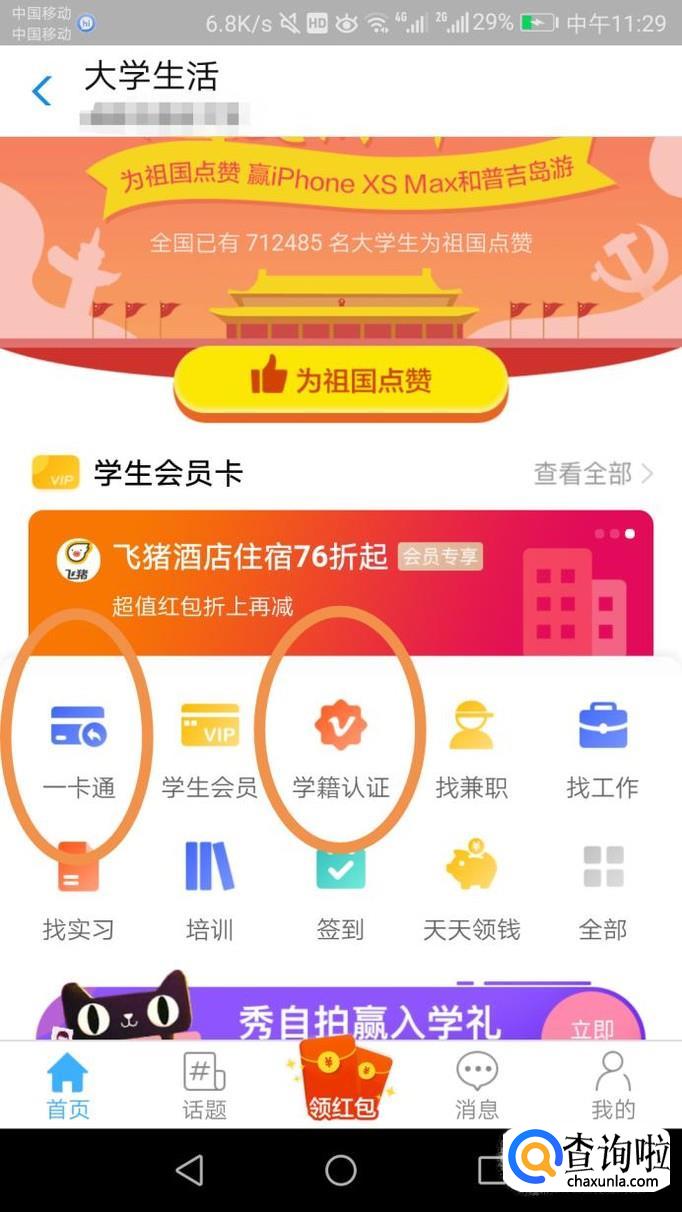 最后,在此页面会看到【学籍认证】和【一卡通】,分别点击进行设置,就可以查看学籍了,如图所示