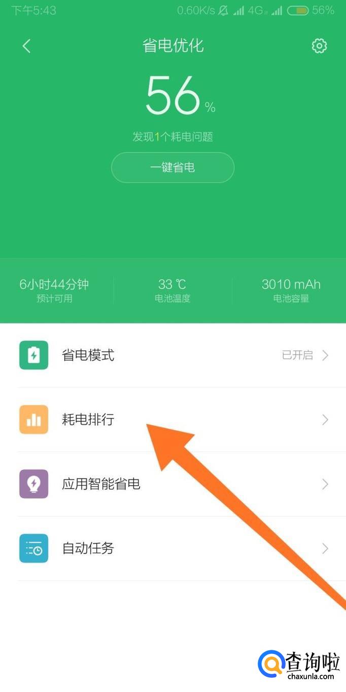 进入“电量管理”页面后,再点击进入“耗电排行”选项。