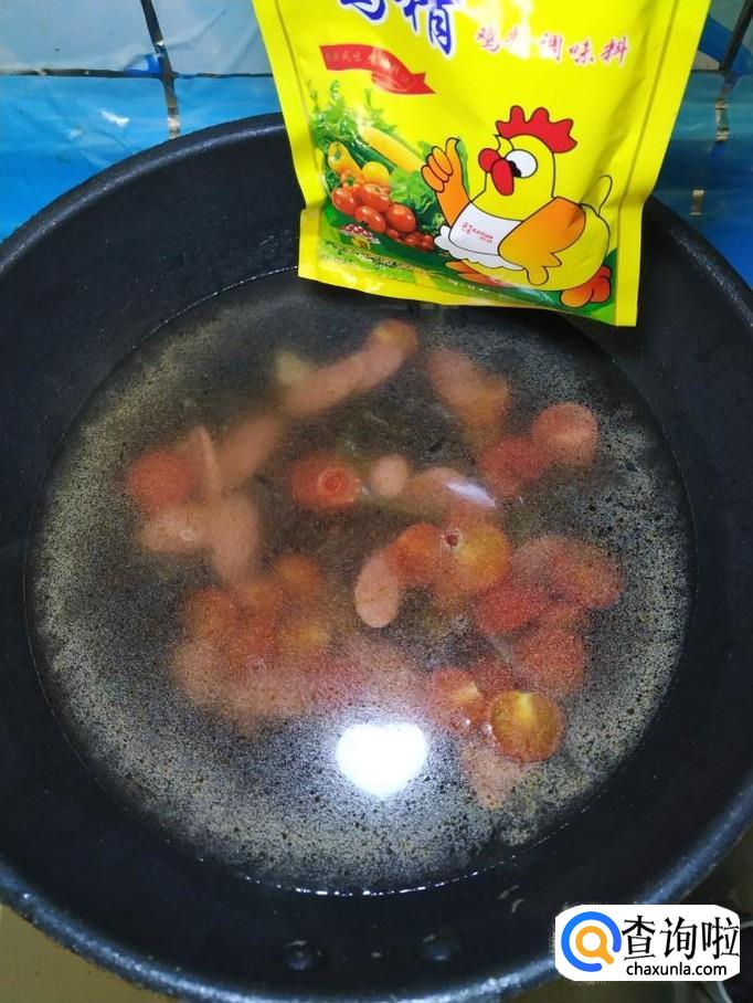 加入适量清水,可以稍微多一些,根据自己的口味,加入适量盐,鸡精,五香粉。