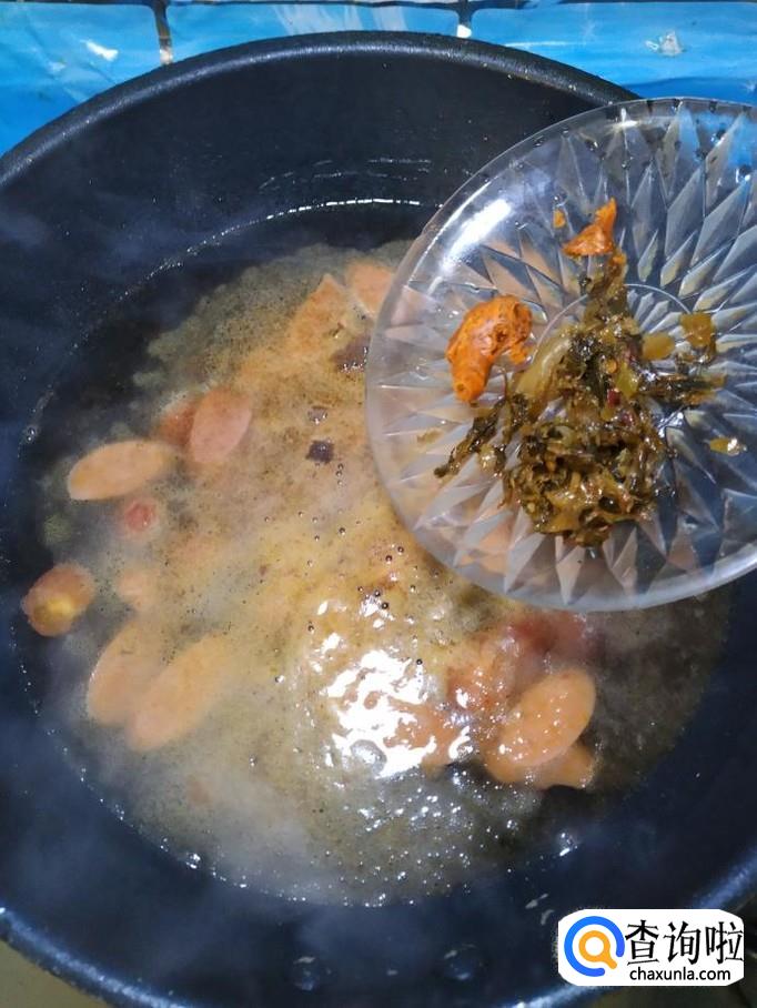 将松花蛋倒入锅中,翻炒均匀。