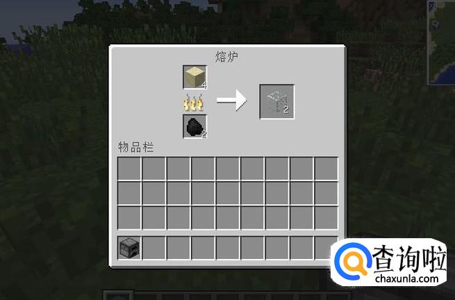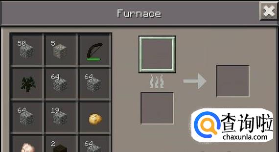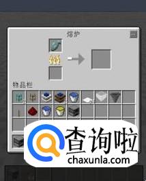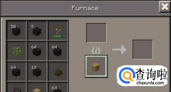 首先点一下熔炉,出现三个格子。左上方的格子放准备烧造的物品(如:矿石,原木),左下角的格子放燃料(如:煤,炭,木板),烧造出来的物品会存放在右边的格子中。