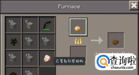 上面一个框放要烧的东西,放置后会在右边出现烤好后的东西。