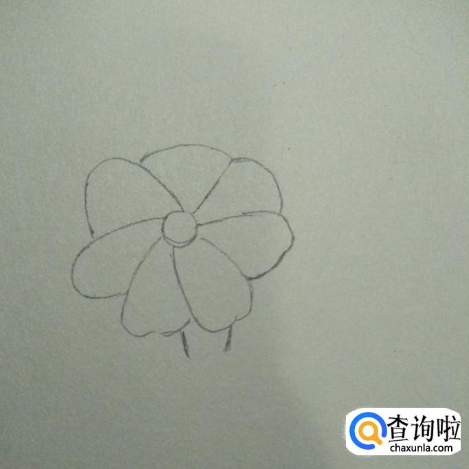 先在素描本中间画一个圆,然后围着圆画七片花瓣,如下图所示