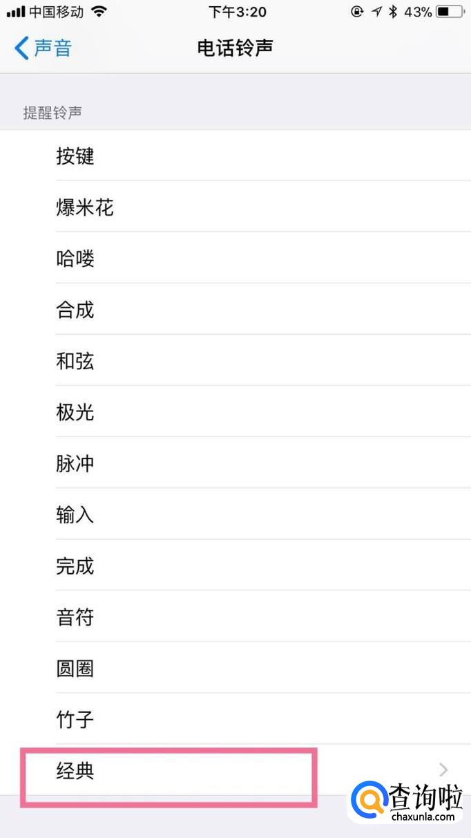 如果没有找到合适的铃声,你也可以到经典里面去找一下也是可以的。