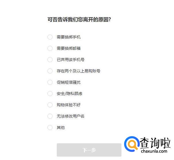 进入之后,选择注销原因,点击“下一步”,如图所示。