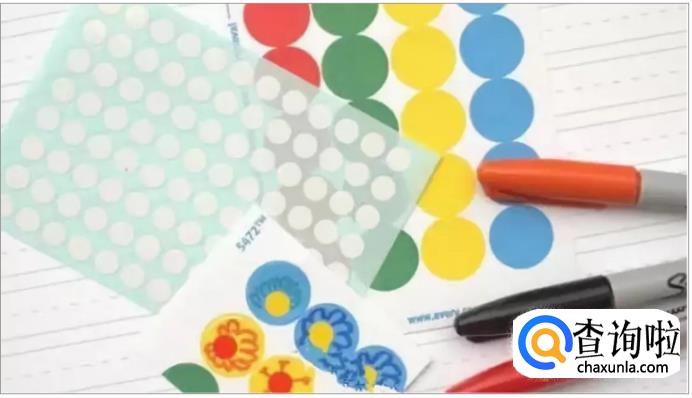 卡纸、白纸,剪刀、彩笔,圆形贴纸、彩色胶带