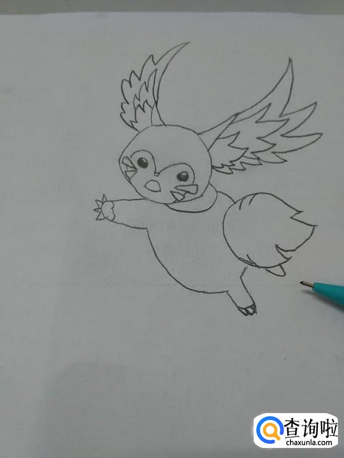 在胳膊和腿的末端,画出手指和脚趾,手指画成四个小三角形、脚上画三个小三角形,因为只露着三个。