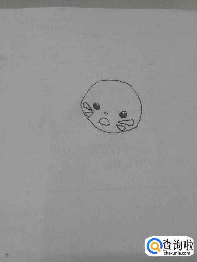 在眼睛下面,画一小一大两个半圆形,表示鼻子和嘴。