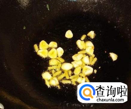 锅中放入食用油,油热后,放入蒜炝出香味。
