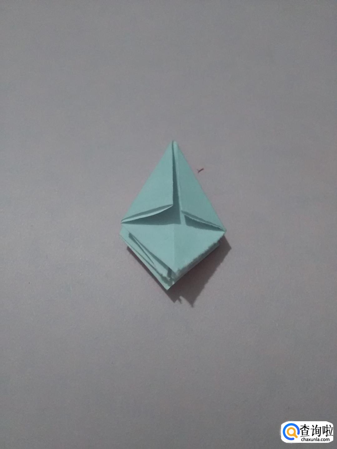 将两个对面的角向中间折,另外两个角压好,折成小的正方形。