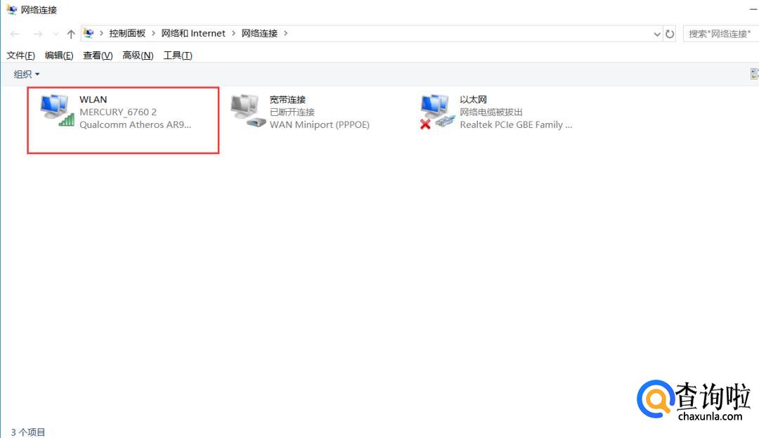 在打开的网络连接设置中,双击已经连接的【WLAN】,如下图所示。