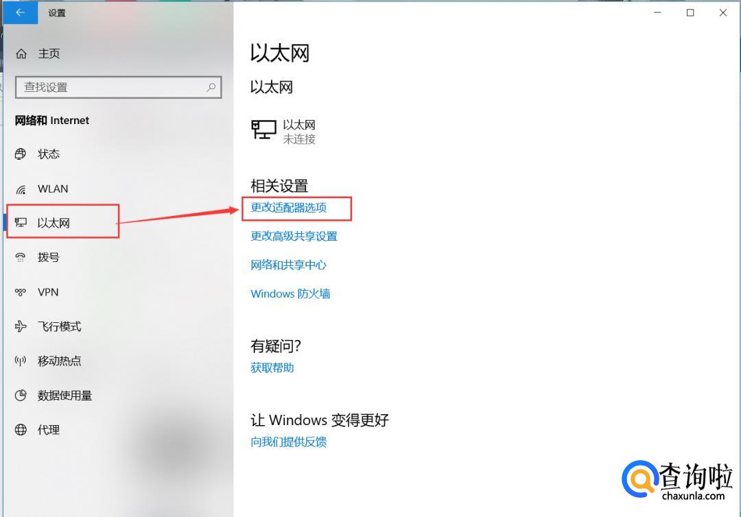 在打开的页面当中选择【以太网】,单击【更改适配器选项】,如下图所示。