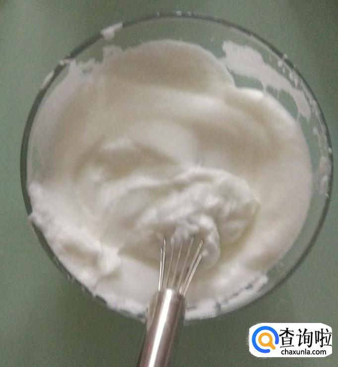 当泡泡能沾在打蛋器上,提起打蛋器能有明显的尖尖,或者打着明显感觉有阻力的时候加第三次糖