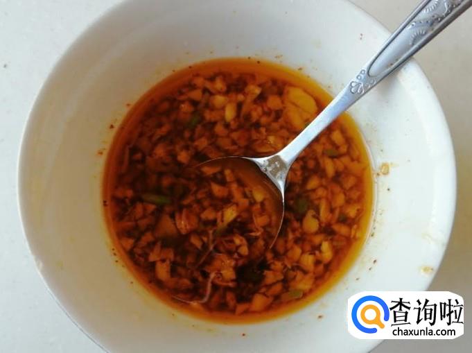 把切好的蒜末放入碗中,加入一勺辣椒面,加入一勺食盐,炒锅放油,油热后浇在蒜末碗中,这样经热油浇过的蒜末比较香,最后碗里加入,适量生抽和少许香醋,搅拌均匀就可以了。