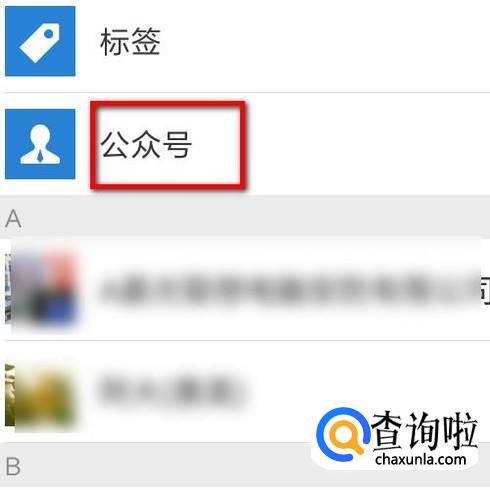 打开了微信通讯录页面;在这里再点:公众号;如图所示。