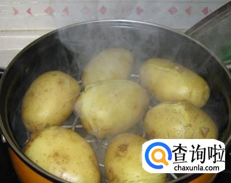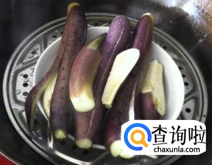在蒸锅内,放上笼屉和水,将茄子和土豆蒸熟。