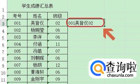 比如下图一是一张学生成绩表,想要将学生的考号、姓名以及班级这些数据合并到D列,那么应该如何操作呢?