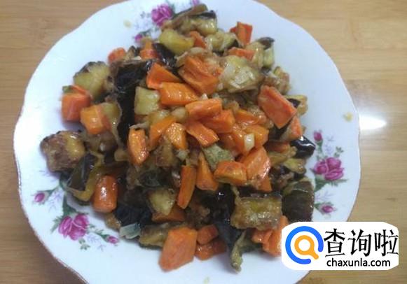 茄子、胡萝卜、淀粉、葱、大蒜、盐、番茄酱、生抽