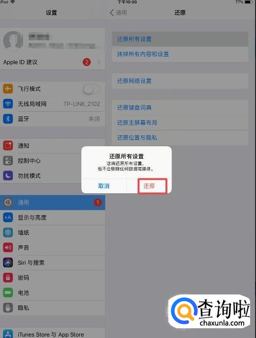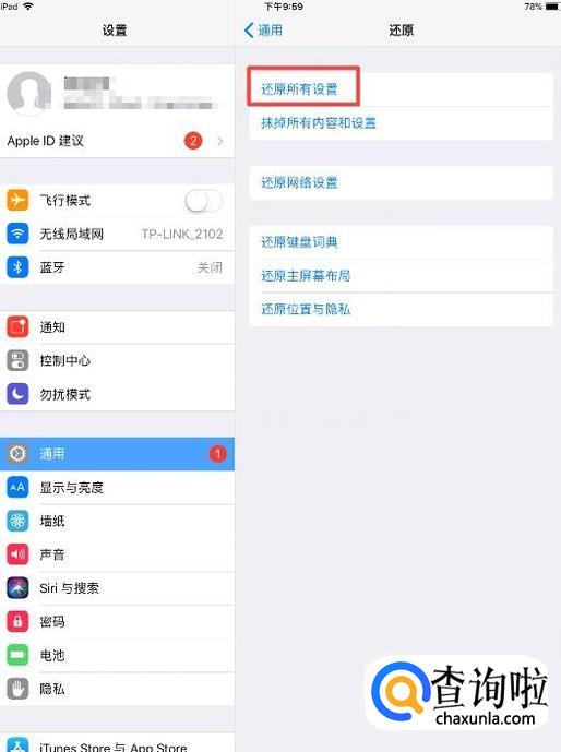 之后我们点击还原所有设置,如图所示;