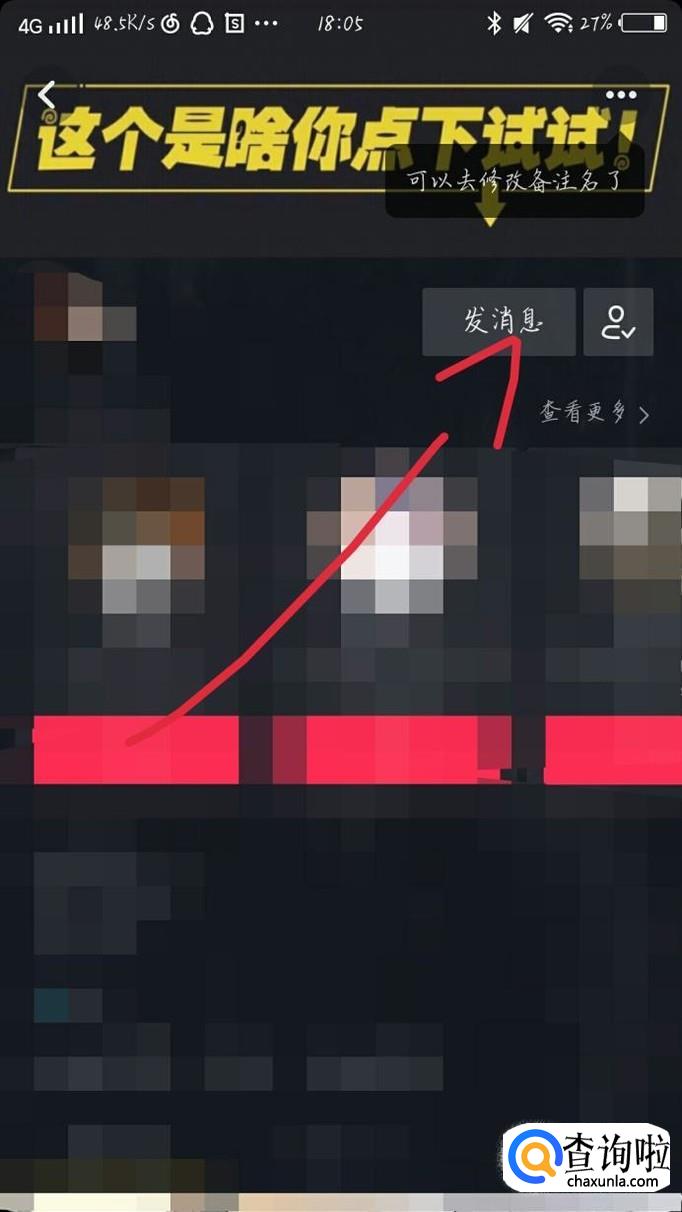 你会看到出现一个新的界面,如图1所示。点击“发消息”选项,如图2箭头所示。这样你就可以发私信啦。
