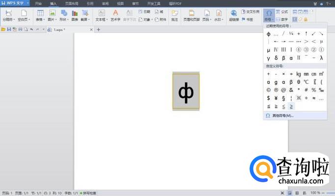 点击“插入”,文本中就打出了“Φ”。