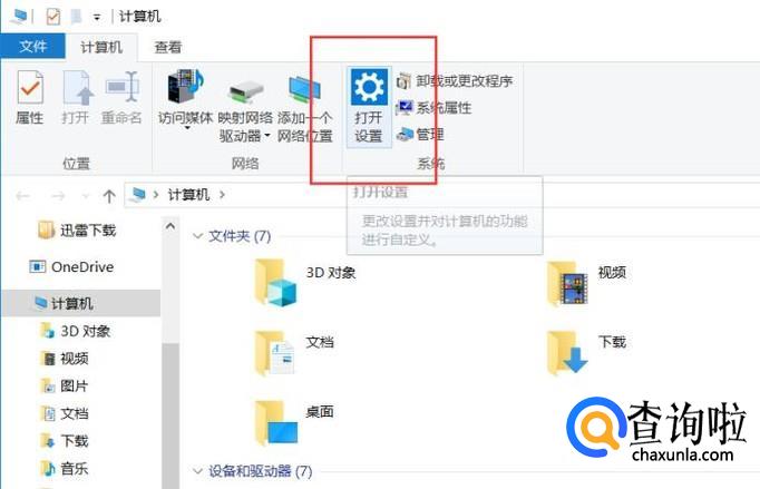 首先,打开Windows系统中的计算机窗口,点击页面中的“设置”菜单,打开Windows设置页面。