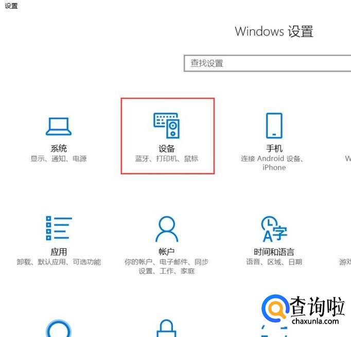 在Windows设置页面中,点击“设备”菜单选项,即可查看到当前Windows系统中安装的硬件设备。