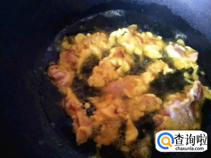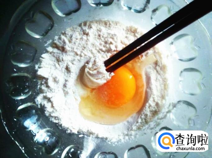 腌制猪肉的时候咱也别闲着,一点点面粉,打入一个鸡蛋,另外加上一点点食盐。