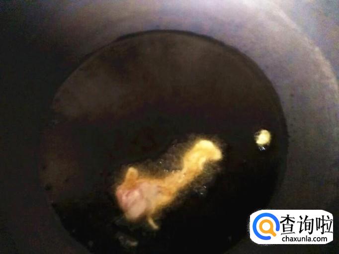 锅里倒上植物油,烧热,放一个肉段下去试一试油温。炸食物的油温稍微高一点点,但也不能太高,不但防止炸糊食物,还会产生对人体有害的物质,所以这一点各位自己掌握好。